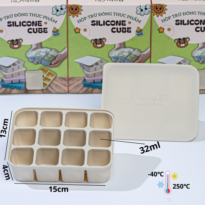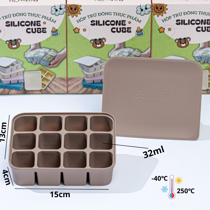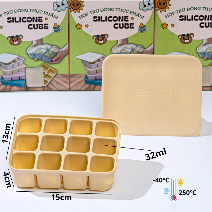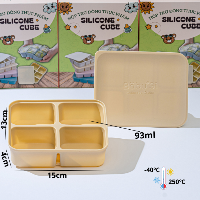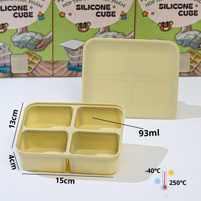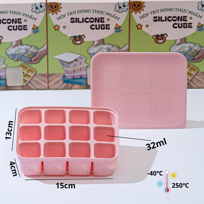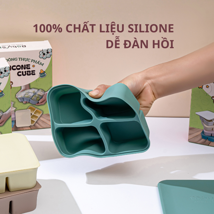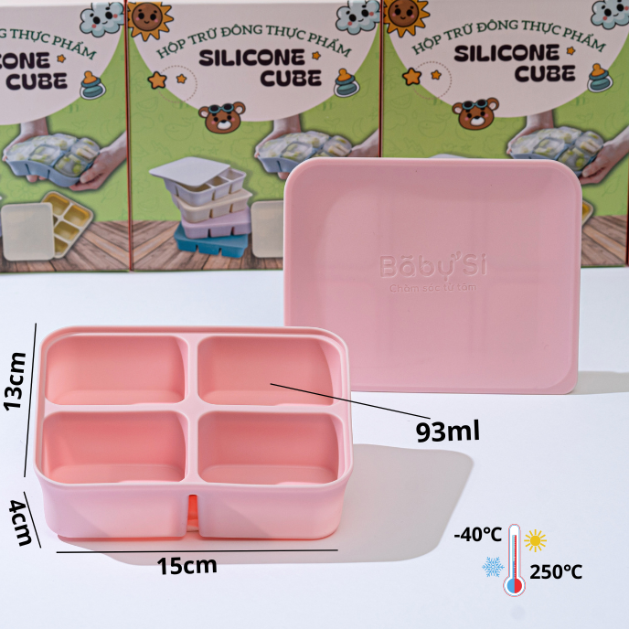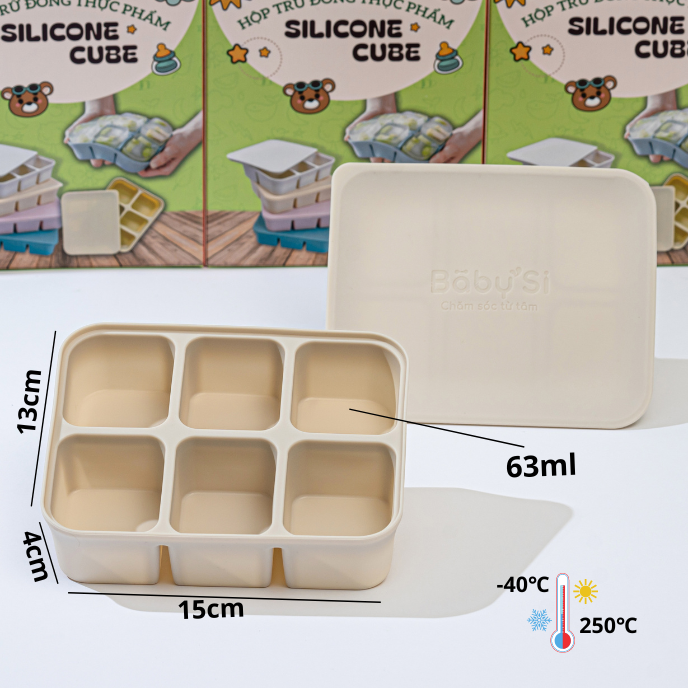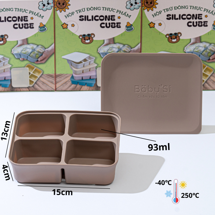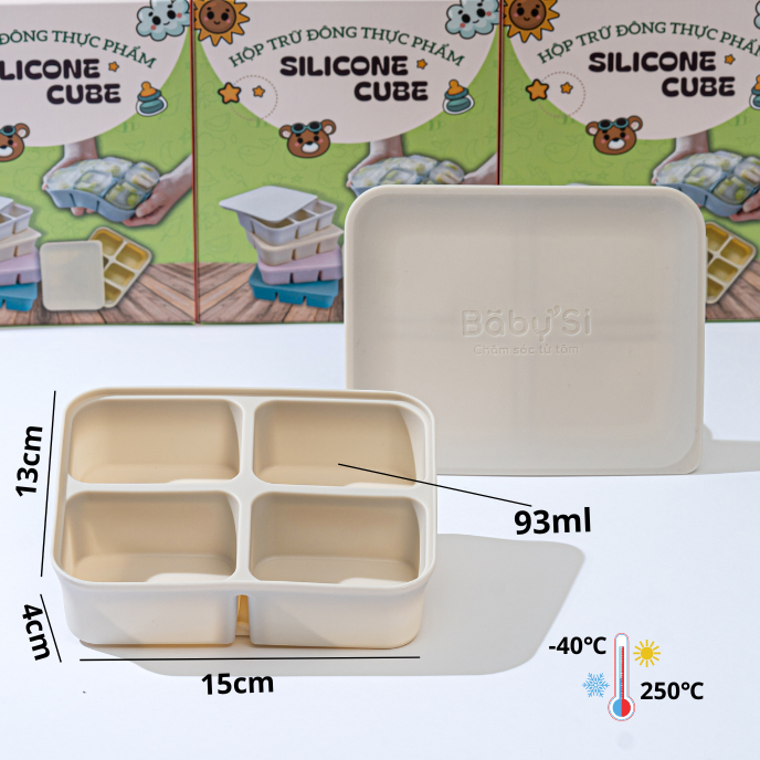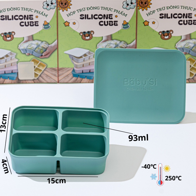 Chất liệu silicone chịu nhiệt từ -40 đến 250 độ C, thích hợp trữ đông đồ ăn trong ngăn đông hay dã đông thực phẩm nhanh trong lò vi sóng.