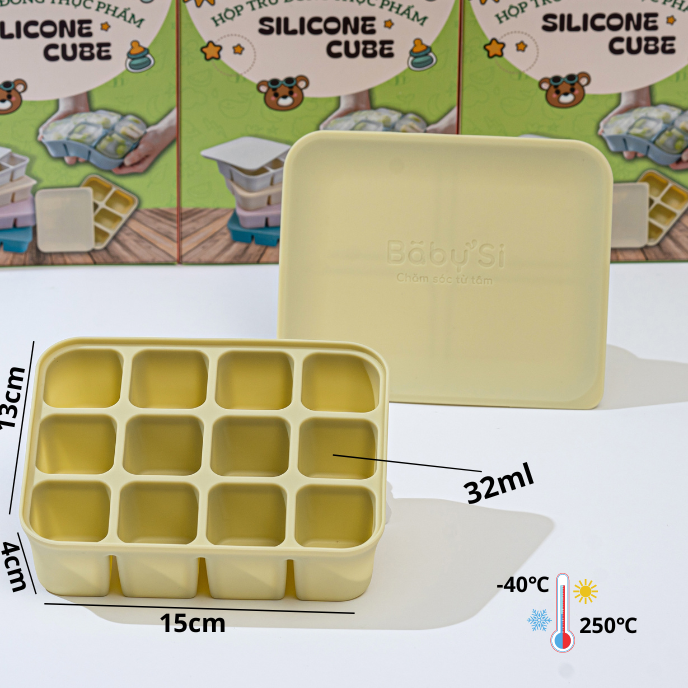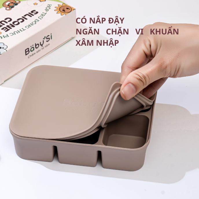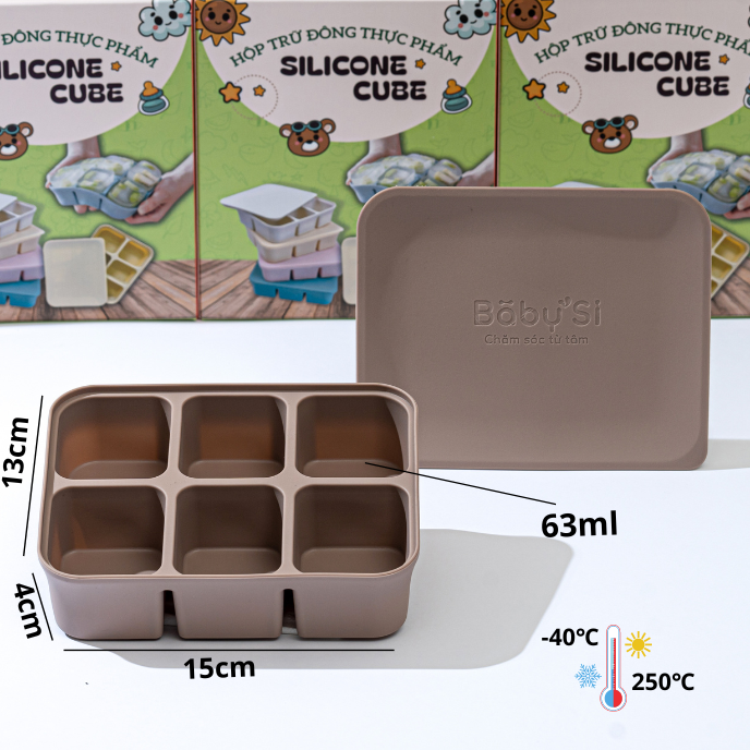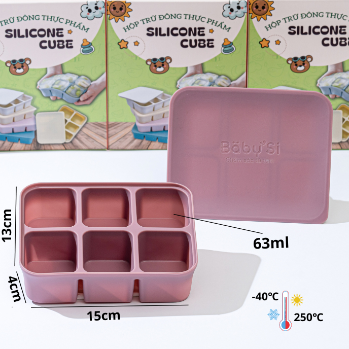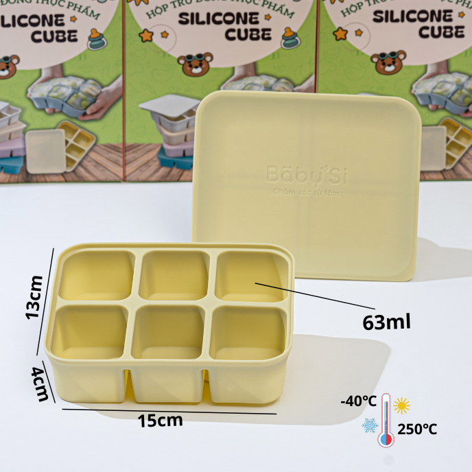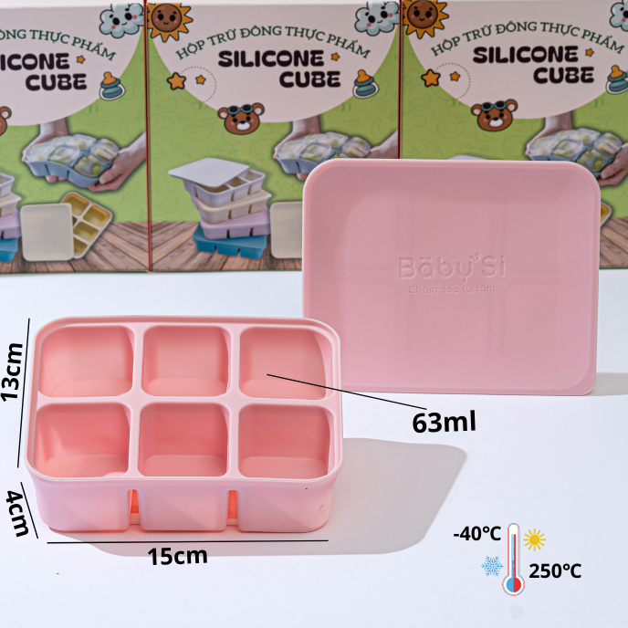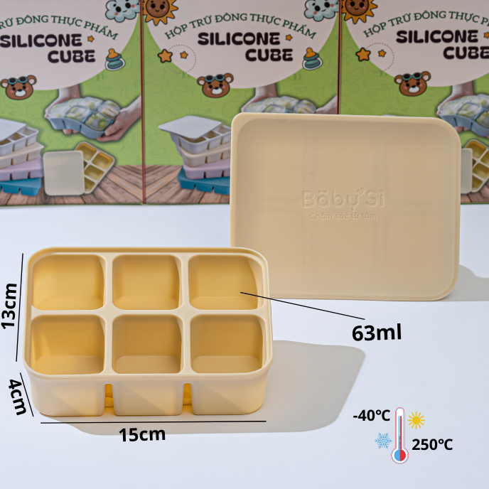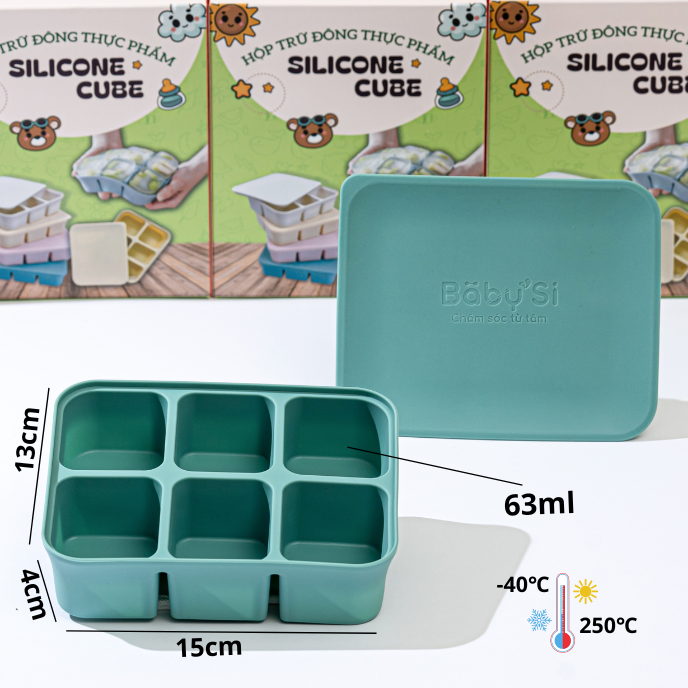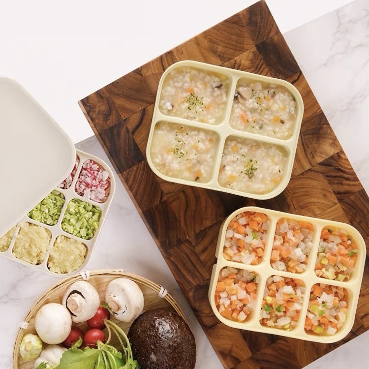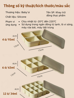 Khay gồm 6 ô, dung tích mỗi ô khoảng 70ml phù hợp với lượng thức ăn từng lần cho bé khi bé bắt đầu giai đoạn ăn dặm.